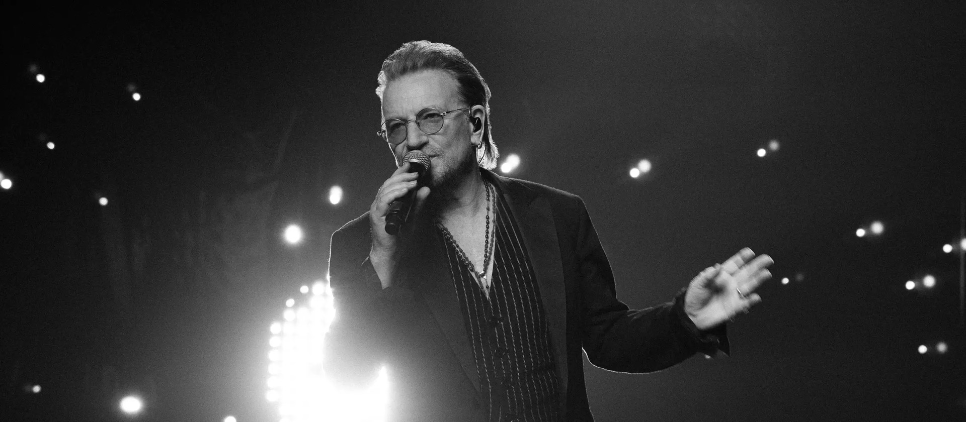 Andrew Dominik directs this ambitious documentary, capturing U2 megastar Bono in a performance of his one-man show Stories of Surrender: An Evening of Words, Music and Some Mischief…, itself adapted from his 2022 memoir. The crisp monochrome film is available in standard 2D film and also an Apple Immersive Video for the Apple Vision Pro headset (the first feature-length film released in the format).