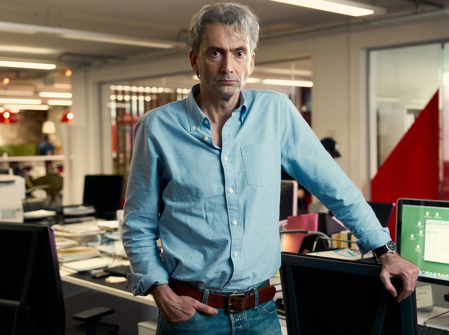 This sounds like a suitably dramatic start to a show, but quickly this voiceover is being second-guessed by Nick Davies, played here by David Tennant. “No, no, it’s too grand, too grand, too grand”, the journo (revealed to be sitting at his computer) mutters, consigning his own words to whatever shadow realm the delete button banishes unwanted writing to.