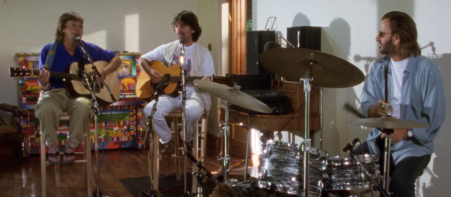 Aha! But, this time around, there’s a new, ninth episode. Yet, despite its plentiful (and very lovely) footage of the then-surviving members Paul, George, and Ringo (Harrison died in 2001), sitting out on the grass and strumming the ukulele, it’s a supposed behind-the-scenes look at the making of the series that doesn’t actually tell us anything we haven’t already gathered from the previous eight hours. And the footage itself, which includes the recording of Lennon’s demos “Free As A Bird” and “Real Love” and the attempted recording of “Now and Then” (eventually released in 2023), has largely already been released to the public.