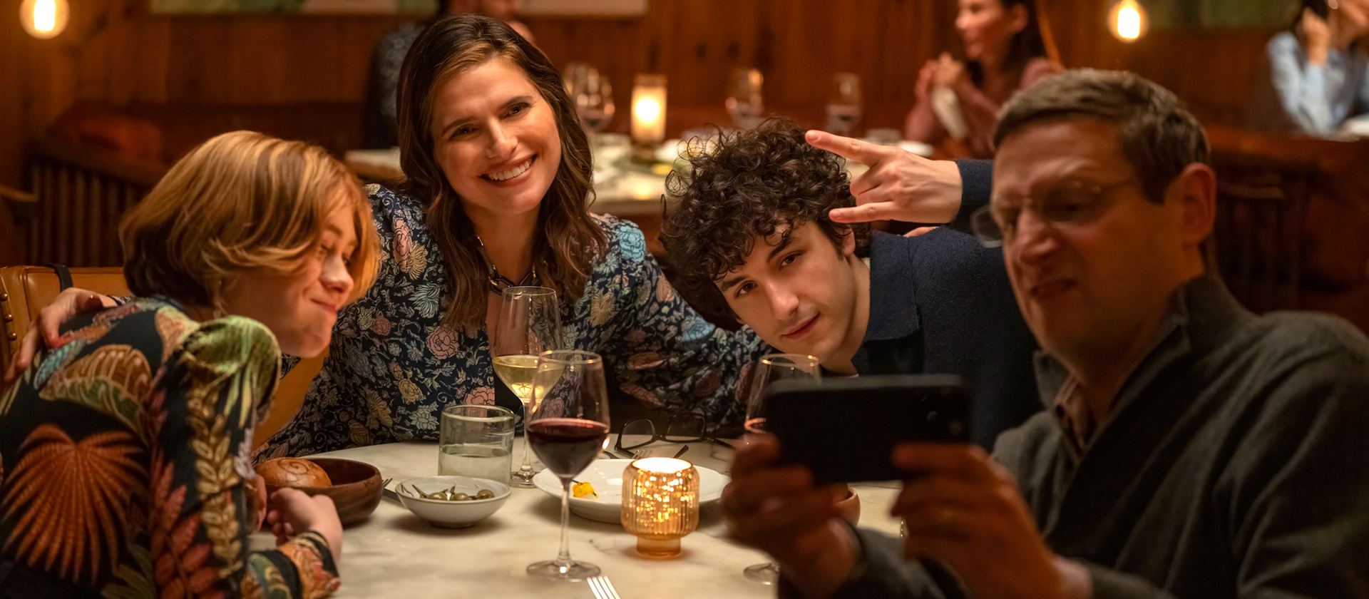 The series opens with the camera pushing in on a restaurant hosting family dinner. “If your mom says it’s a nut, it’s a nut,” is the first dialogue we hear, some parenting from Robinson’s character Ron Trosper (he and Kanin never met an awkward pronunciation of a name, word or phrase they didn’t like). There’s a Trosper family selfie, they’re enjoying a fancy meal, and his wife Barb (Lake Bell) toasts him for weathering life’s ups and downs. At all of these points we wait for the other shoe to drop—it feels too nice, too perfect, as if the ITYSL sketch is about to get underway… And then the toast is interrupted…