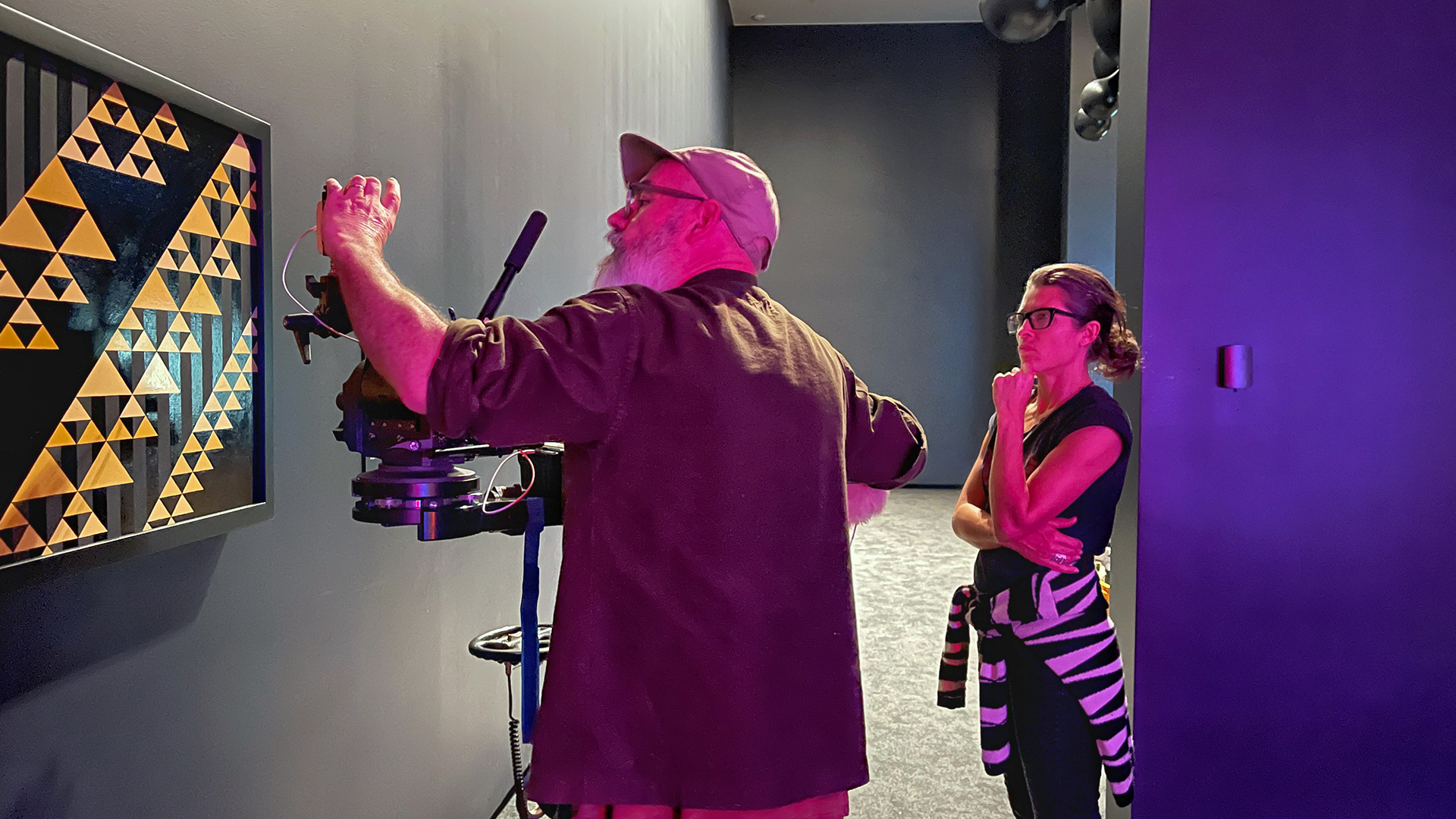 Winstanley was given full access and hit the ground running. “They gave me a desk at the gallery. I could only afford to have a proper crew at certain points. Other times, it was just me. Luckily my dear friend Mikey Jonathan gave me one of his cameras. At times, I just had my bloody iPhone, whatever I could get my hands on trying to capture as much as I could up until the opening.”