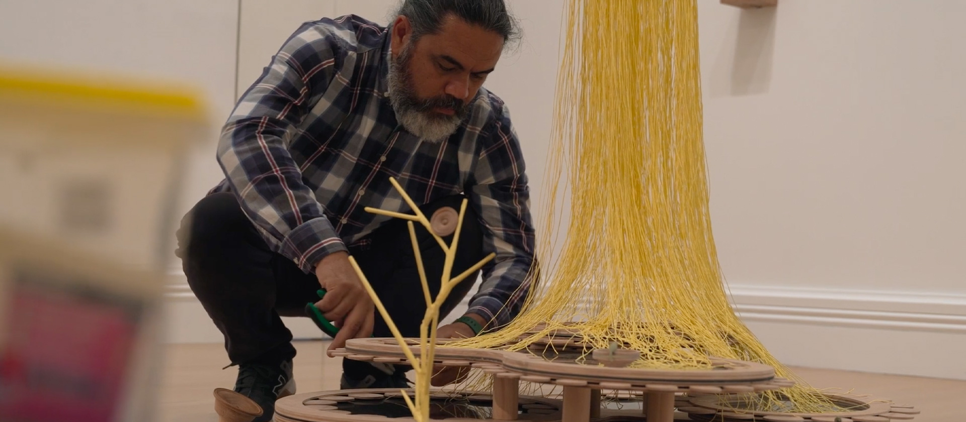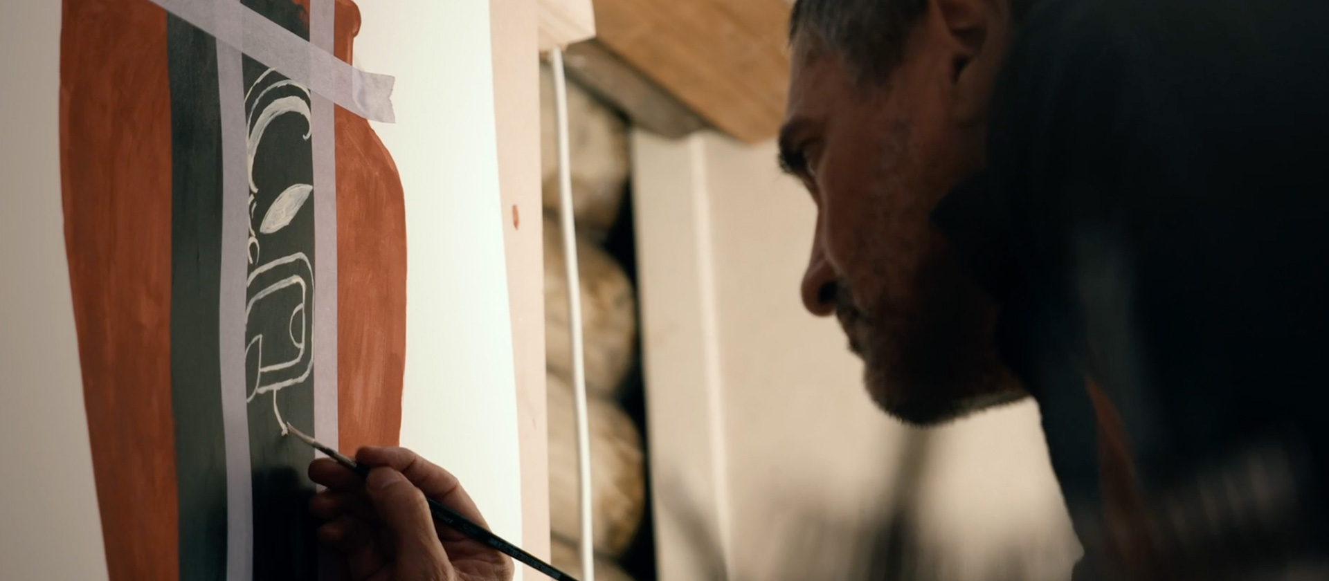 With a colossal task in front of him involving over 100 artists and more than 300 artworks, Borell was a natural pou to build the film around. Winstanley thought, “Oh my God, how on earth do you put something like that together? I thought it’d be really fascinating to see. Pretty much the entire gallery is working on this one thing. I just I love that kind of communal support and that relationship that he had with Haerewa (the gallery’s Māori advisory group). I think that speaks to him as not only an artist, but someone who really loves that tuakana teina—the relationship, the guidance your elders provide.”